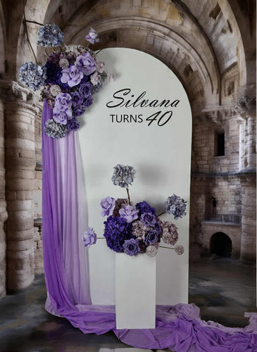 1.8m foldable arch & 2 x purple / violet flowers – Advanced Package - HIRE ONLY