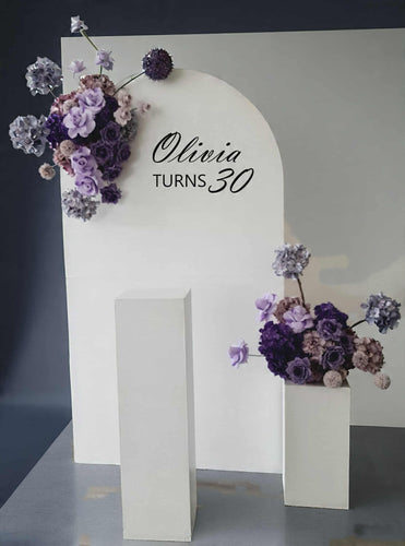 1.8m foldable arch & 2 x purple / violet flowers & cake stand – Deluxe Package - HIRE ONLY
