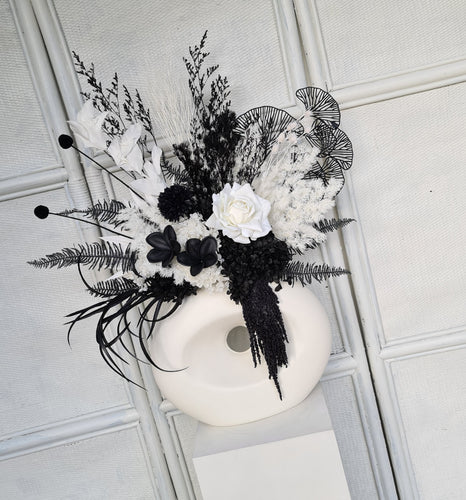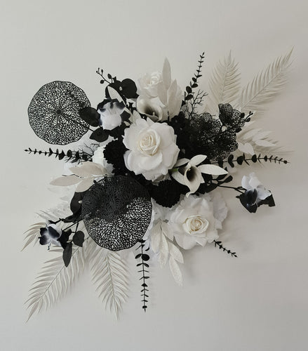 Black & White hanging flowers for backdrop, arch, arbour - HIRE ONLY