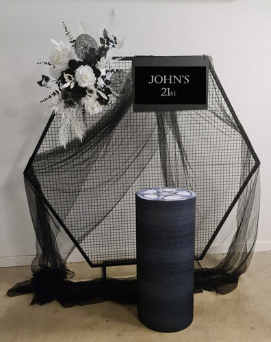 Black & white Blokes Birthday package w wheels cake stand - HIRE ONLY