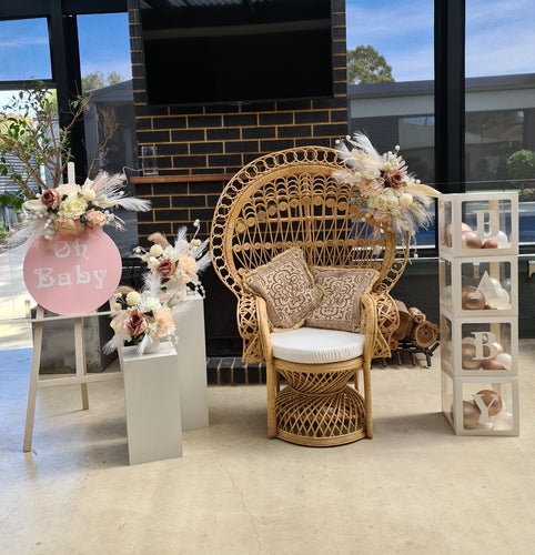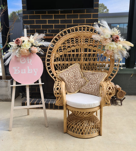 Boho blush Queen peacock chair & easel– Oh baby package - HIRE ONLY
