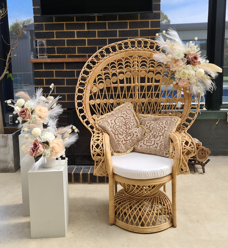 Boho blush Queen peacock chair, plinths & flowers - HIRE ONLY