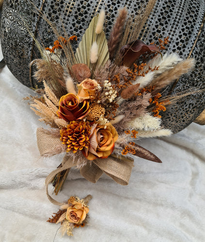 Elopement set - Rustic style bridal bouquet & buttonhole