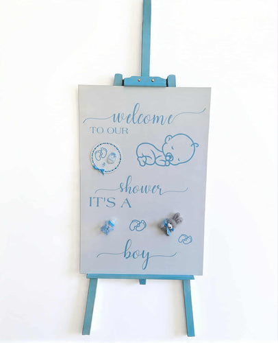 Baby shower – BABY BOY - blue welcome sign (easel & board) - HIRE ONLY