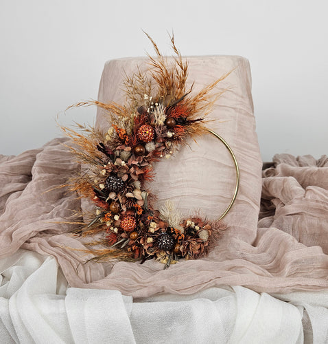 Rustic Floral cake hoop combination of preserved & dry flowers