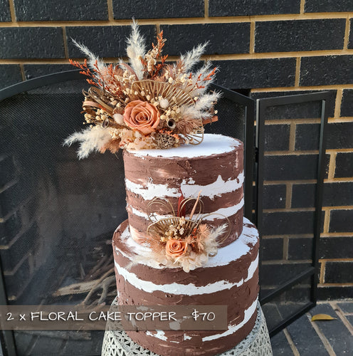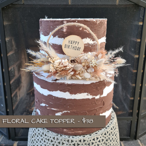 Happy Birthday Boho style neutral preserved flowers cake topper