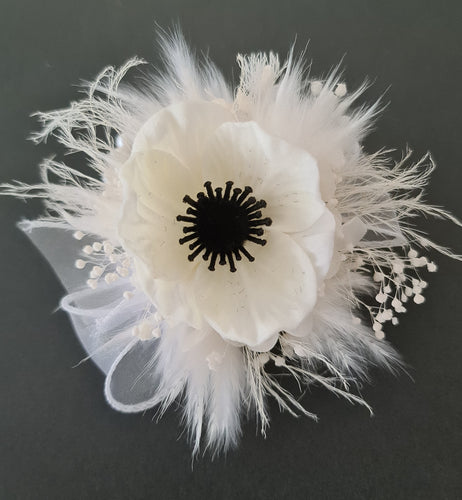 Boho everlasting flowers corsage white w silver & crystals – school prom