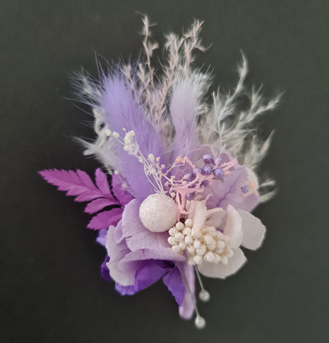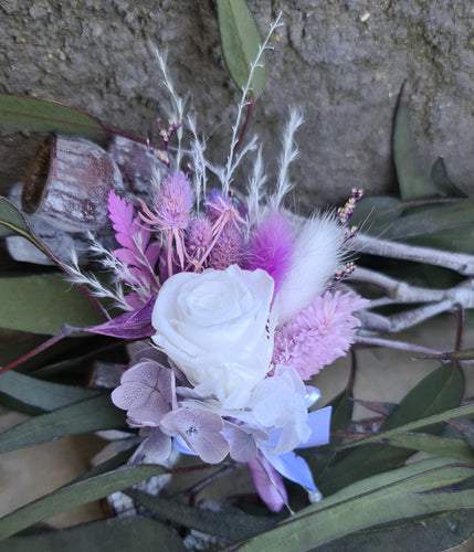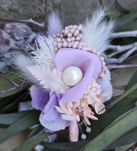 Everlasting flowers wedding buttonhole - Violet, Pink & White