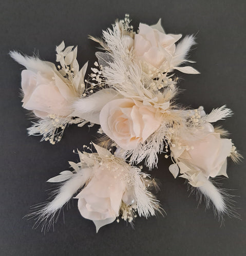 5 x Rustic style buttonholes with mini preserved roses