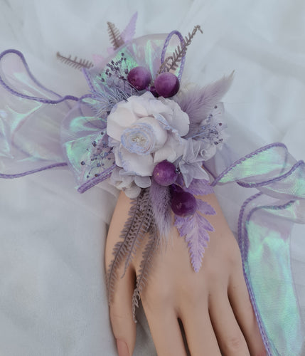 Violet purple tones preserved flowers corsage - School formal, prom, graduation, wedding