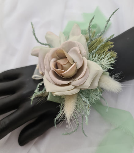 Sand & sage green everlasting flowers corsage – school formal, prom, wedding