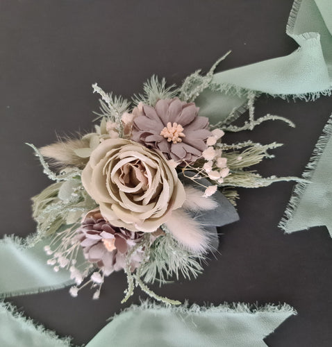 Green, sage green sand colours everlasting flowers corsage – school formal, prom, wedding