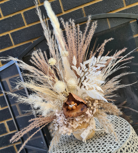 Boho preserved flowers in unique pot w Happy Birthday tag