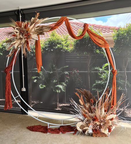 Double Circle Backdrop & 2 x rustic flowers - HIRE ONLY