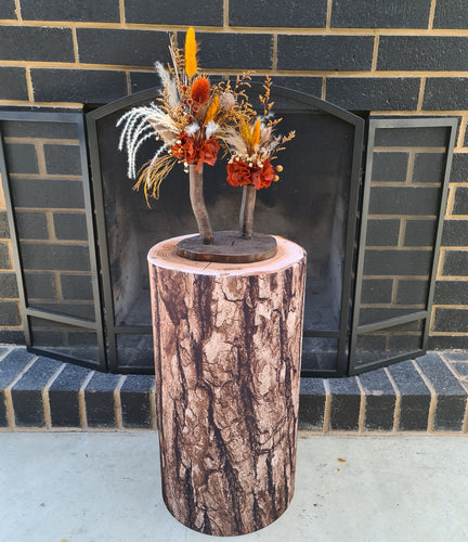 Rustic wood stump cylinder plinth flower / event stand - 55cm - HIRE ONLY