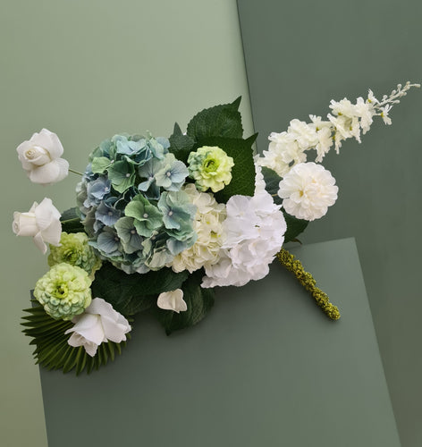 Green & white large hanging flowers for arch / backdrop / arbour - HIRE ONLY
