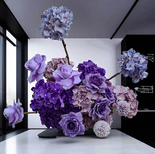 Purple / violet floor / plinth flowers - HIRE ONLY