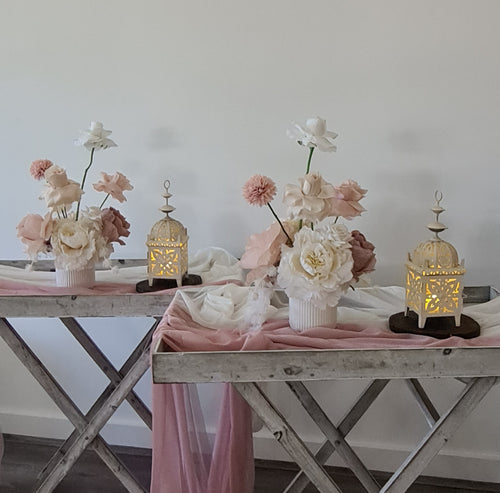Boho blush romantic table / aisle flowers - HIRE ONLY