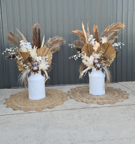 Large Boho rustic flowers in metal urns - HIRE ONLY