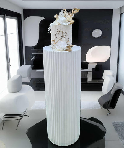 White cylinder ripple plinth cake or flower stand - 55cm - HIRE ONLY