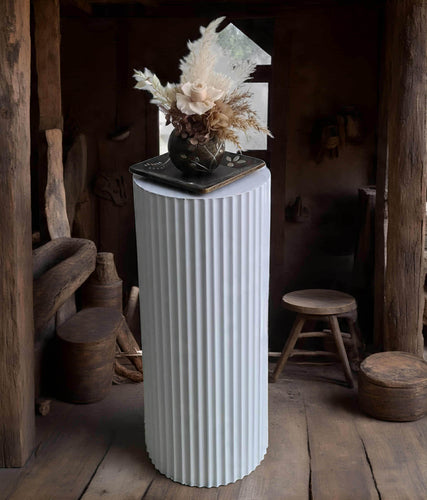 White cement look round ripple plinth - 90cm - HIRE ONLY