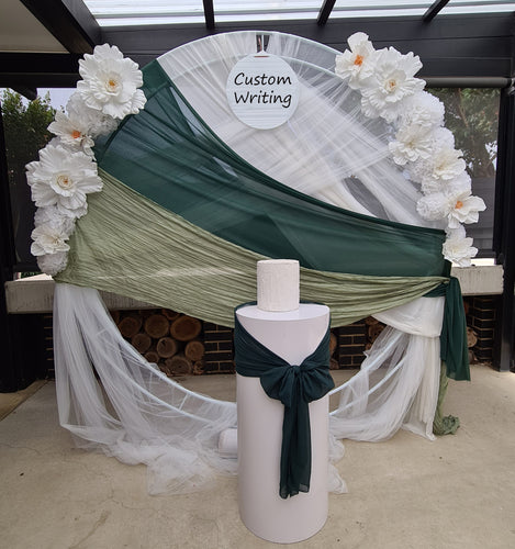 White & green double circle backdrop package w flowers and plinth - HIRE ONLY