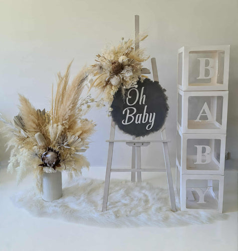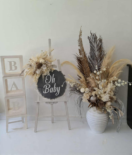 Boho neutral Baby Shower welcome sign & medium urn - HIRE ONLY