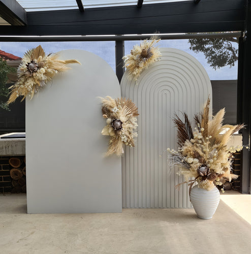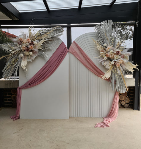 Double white backdrops / arches & 4 x boho flowers - HIRE ONLY