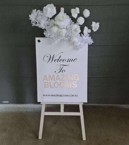 White welcome sign flowers including welcome stand / frame - HIRE ONLY