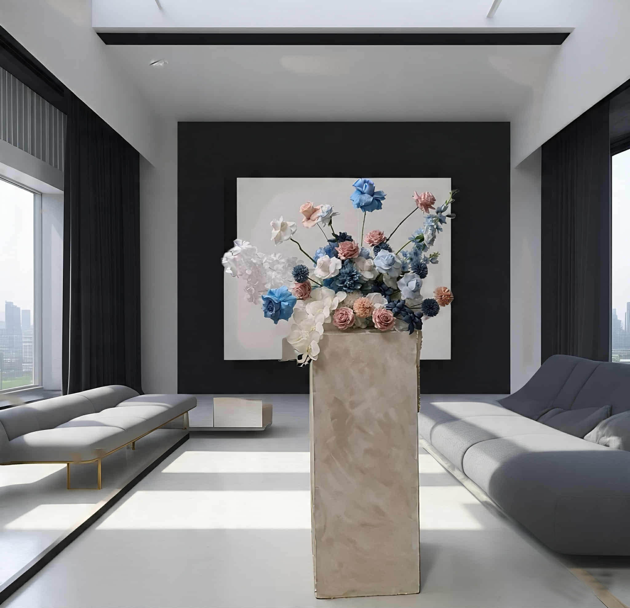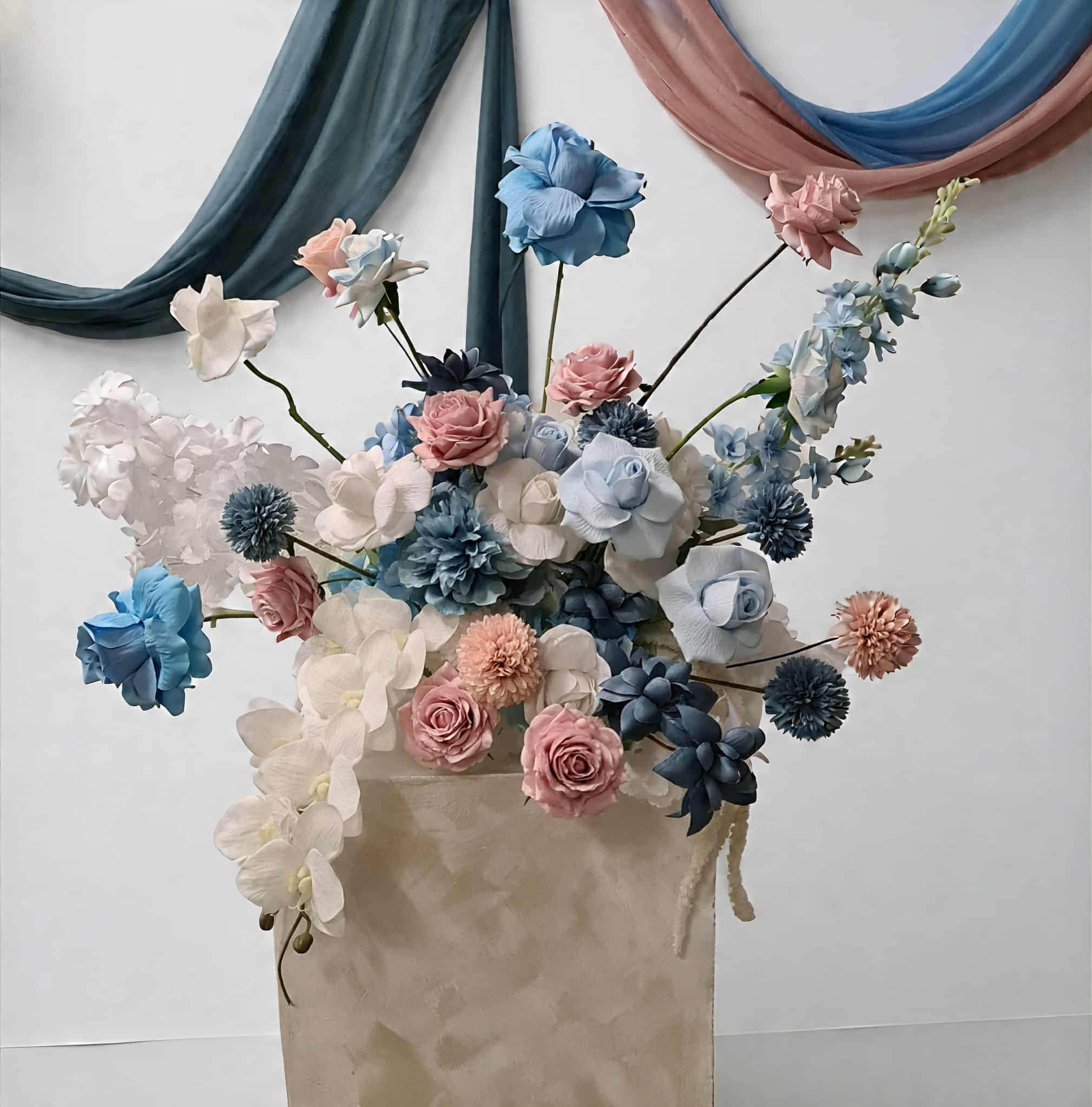 - Blue, pink & white floor / plinth / table flowers ABH432 - $75
