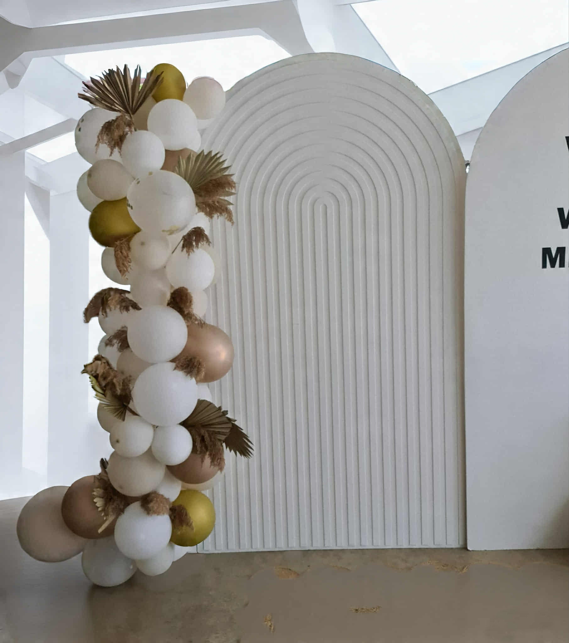 - White ripple arch backdrop – 2.1m tall (ABH229) - $100
