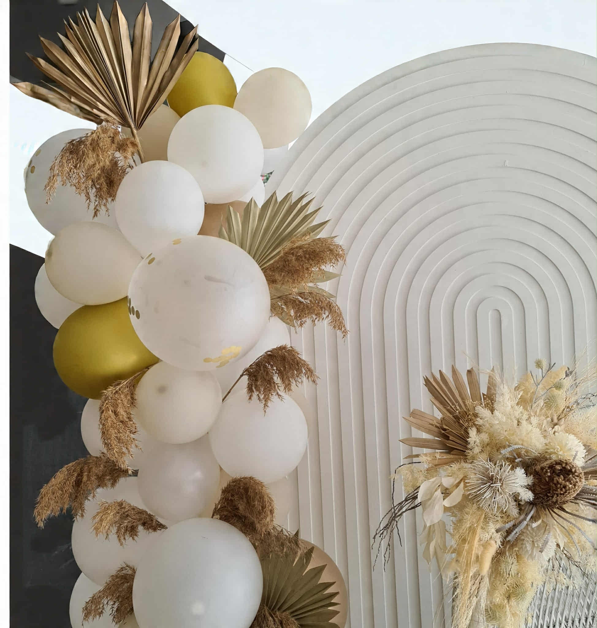 - FEATHER REED GRASS & PALM LEAVES PICTURED WITH BALLOONS AVAILABLE AT EXTRA COST