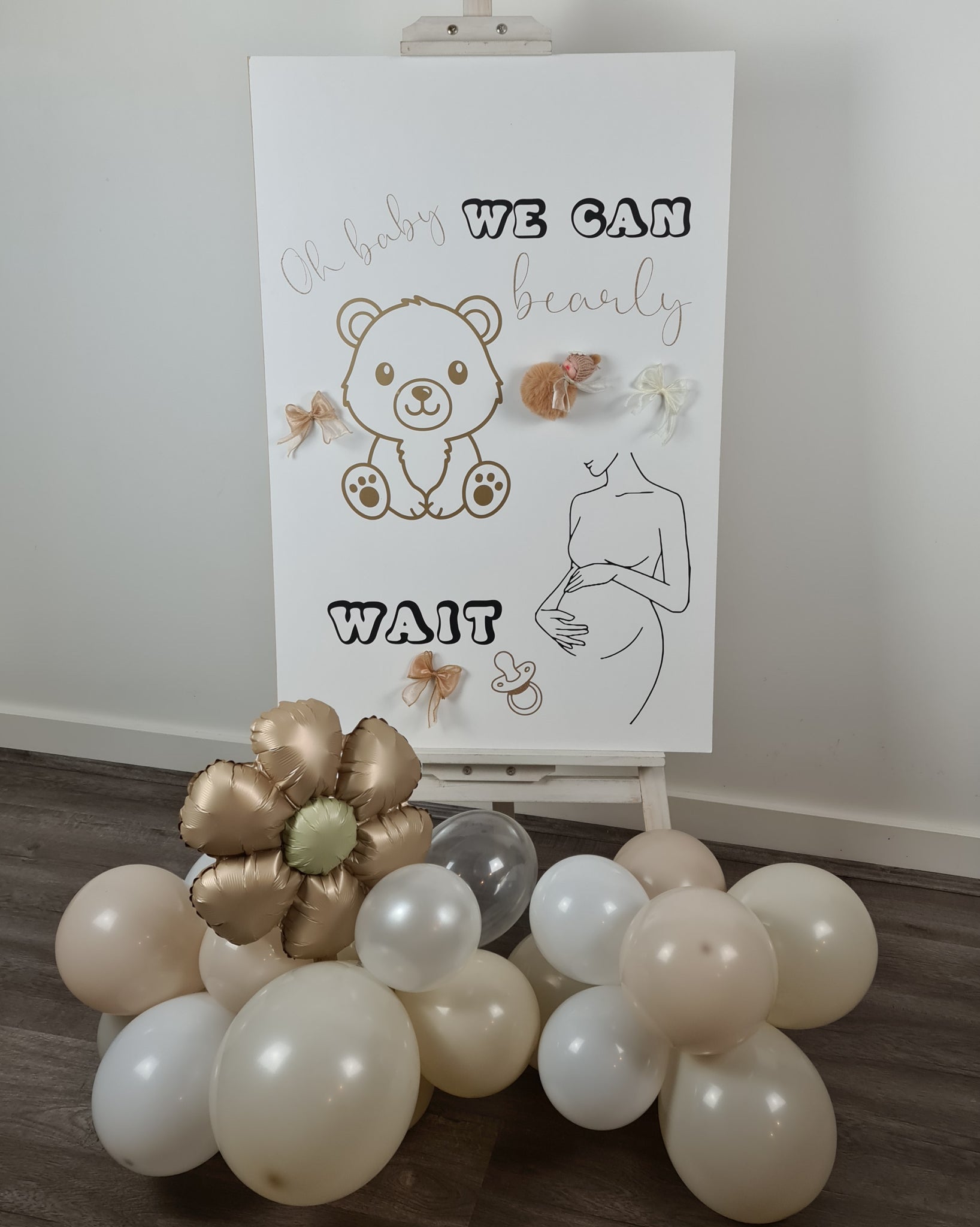 Baby shower neutral welcome sign (easel, board & balloons)