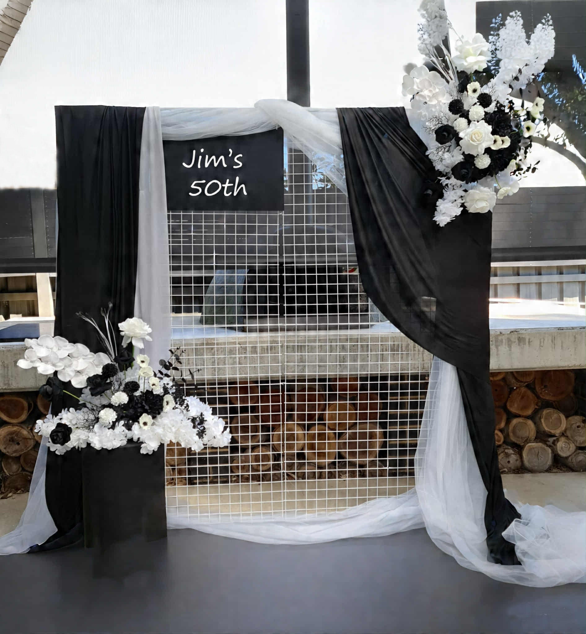 - Black & white hanging flowers for arch / arbour / backdrop – CODE: ABH223 - $50