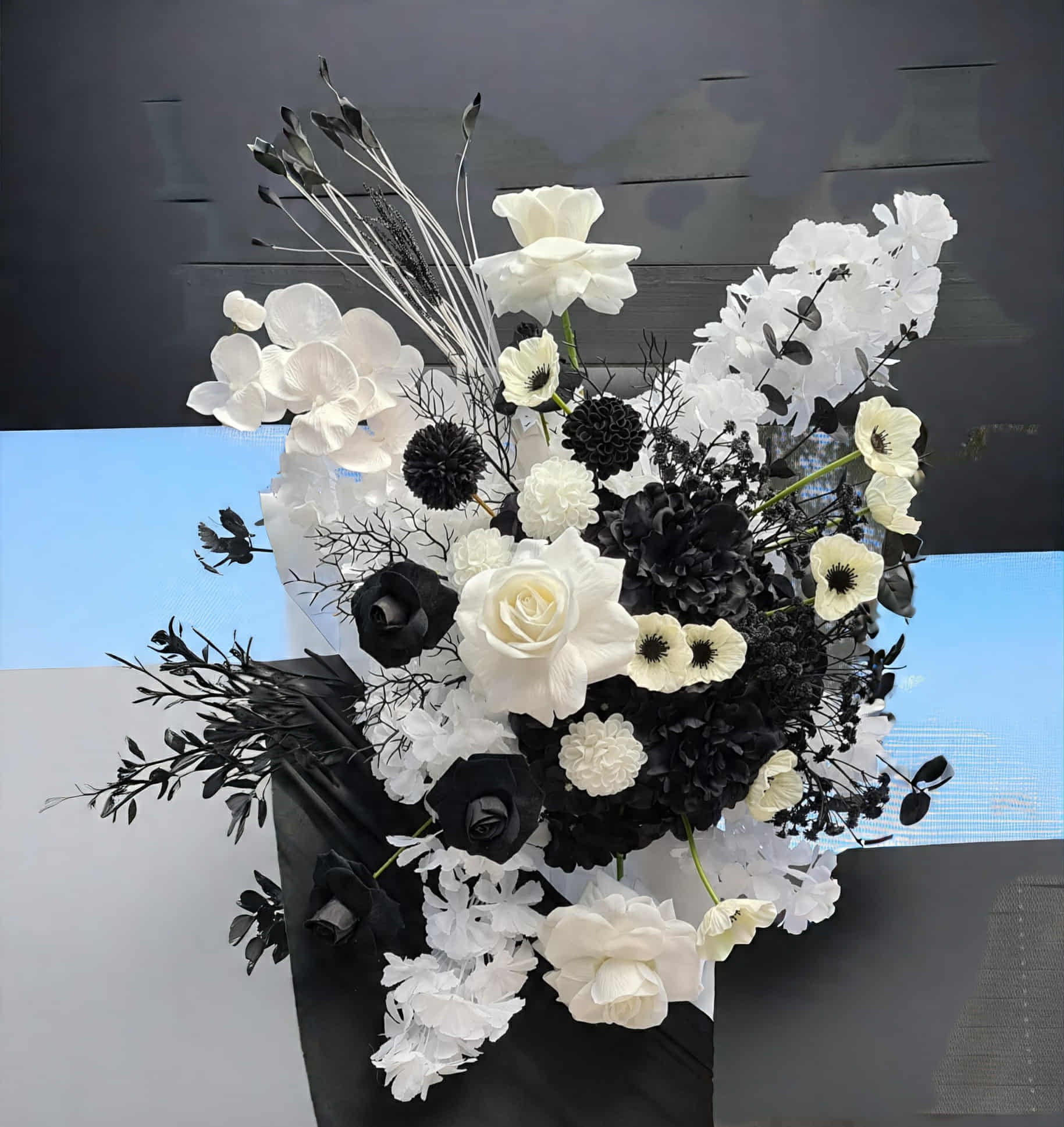 - Black & white floor / plinth flowers – CODE: ABH224 - $50