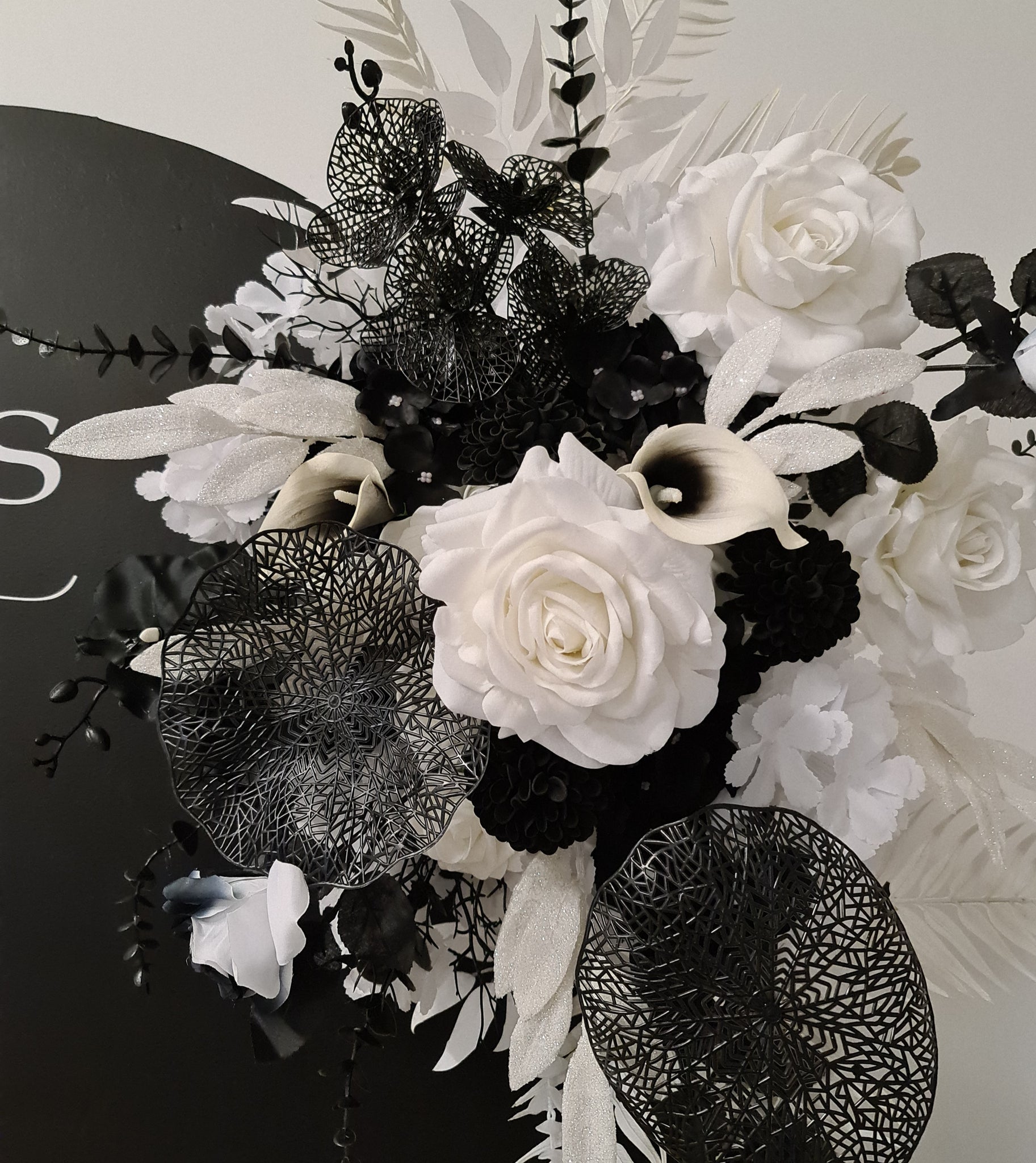 - Black & White hanging flowers for backdrop, arch, arbour (ABH305) - $55