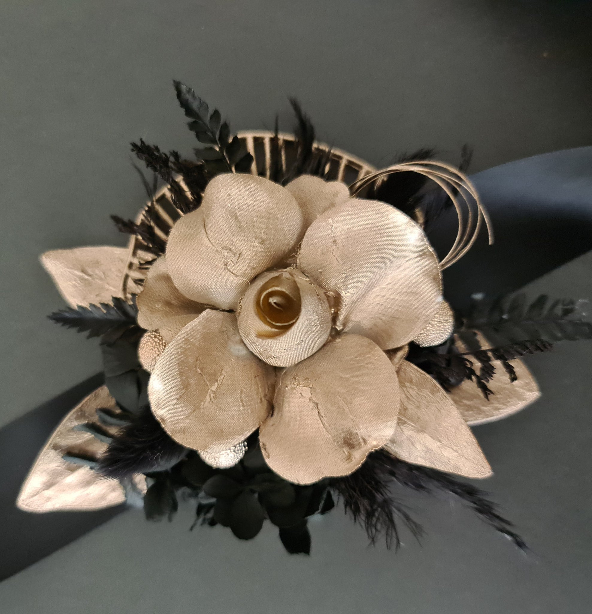 Black & Champagne gold Everlasting flowers corsage - School Prom / Formal
