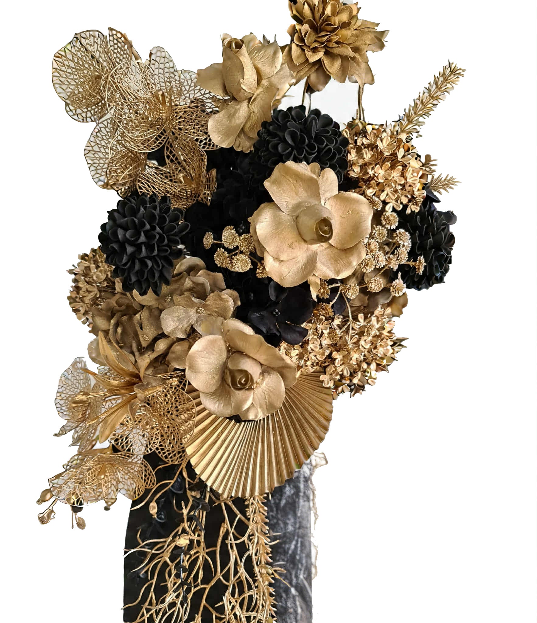 Black & Gold Backdrop Arbour Easel Welcome sign Hanging Flowers