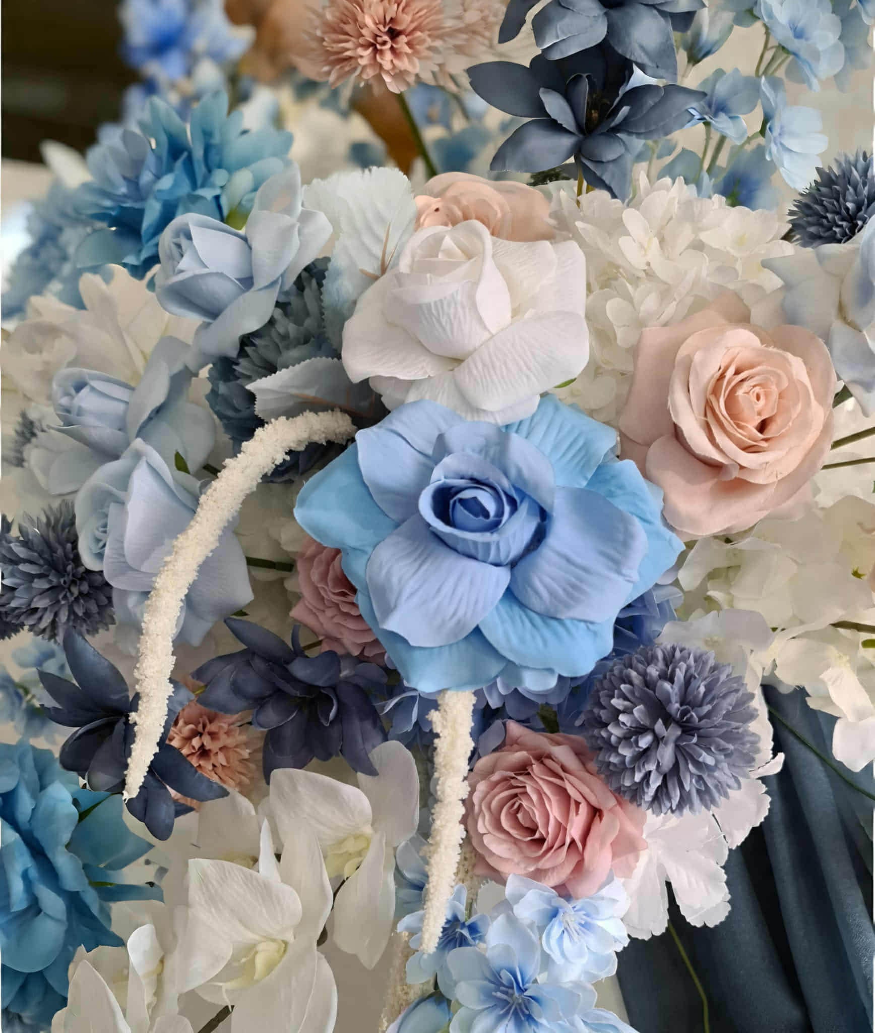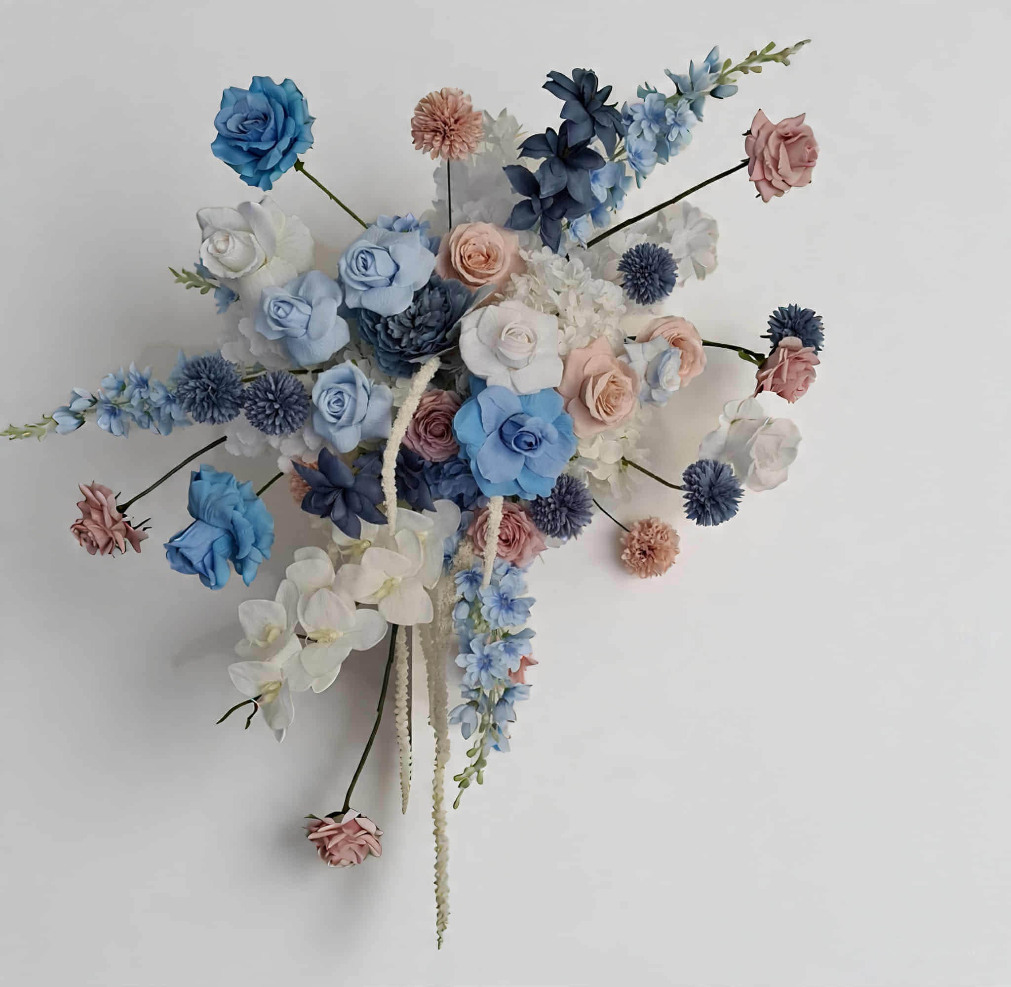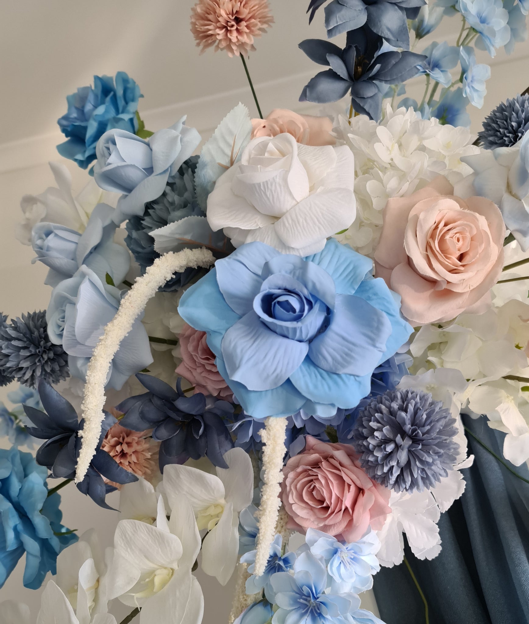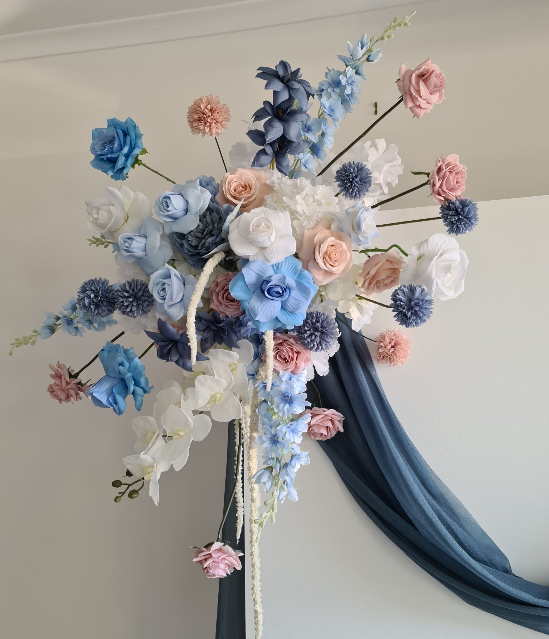 Blue, pink & white hanging flowers for backdrop, arch, arbour