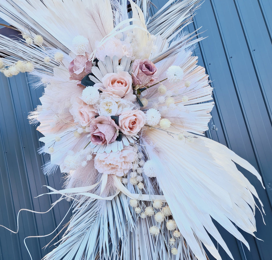 Combination of silk, dry & preserved flowers in peach, dusty pink and neutral colours: suitable for wedding, engagement, birthday, baby shower, anniversary, or any event.