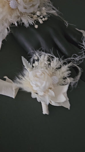 Boho Corsage & buttonhole set w peony - School formal, prom, graduation, wedding CODE: AB1127 - $65