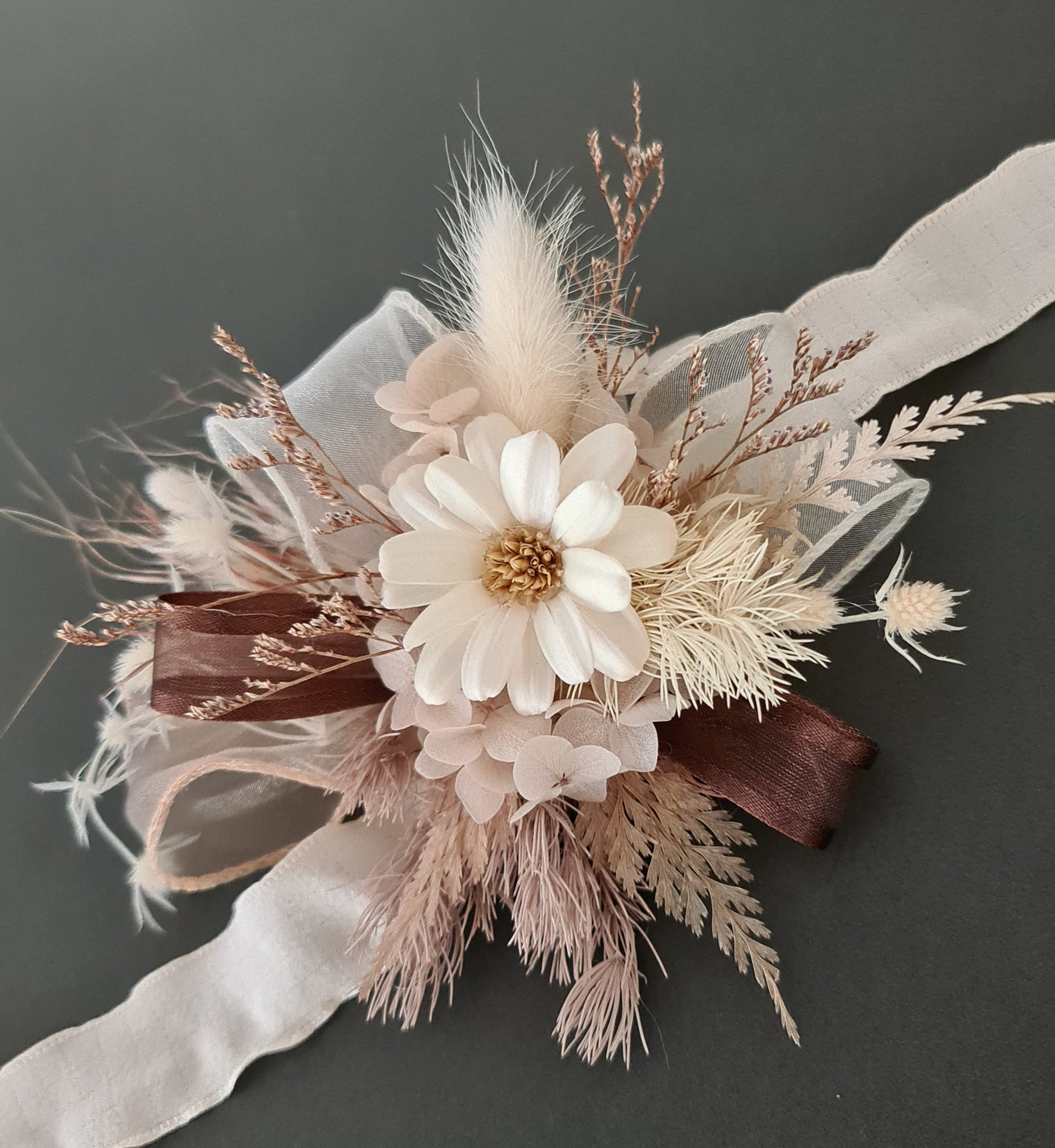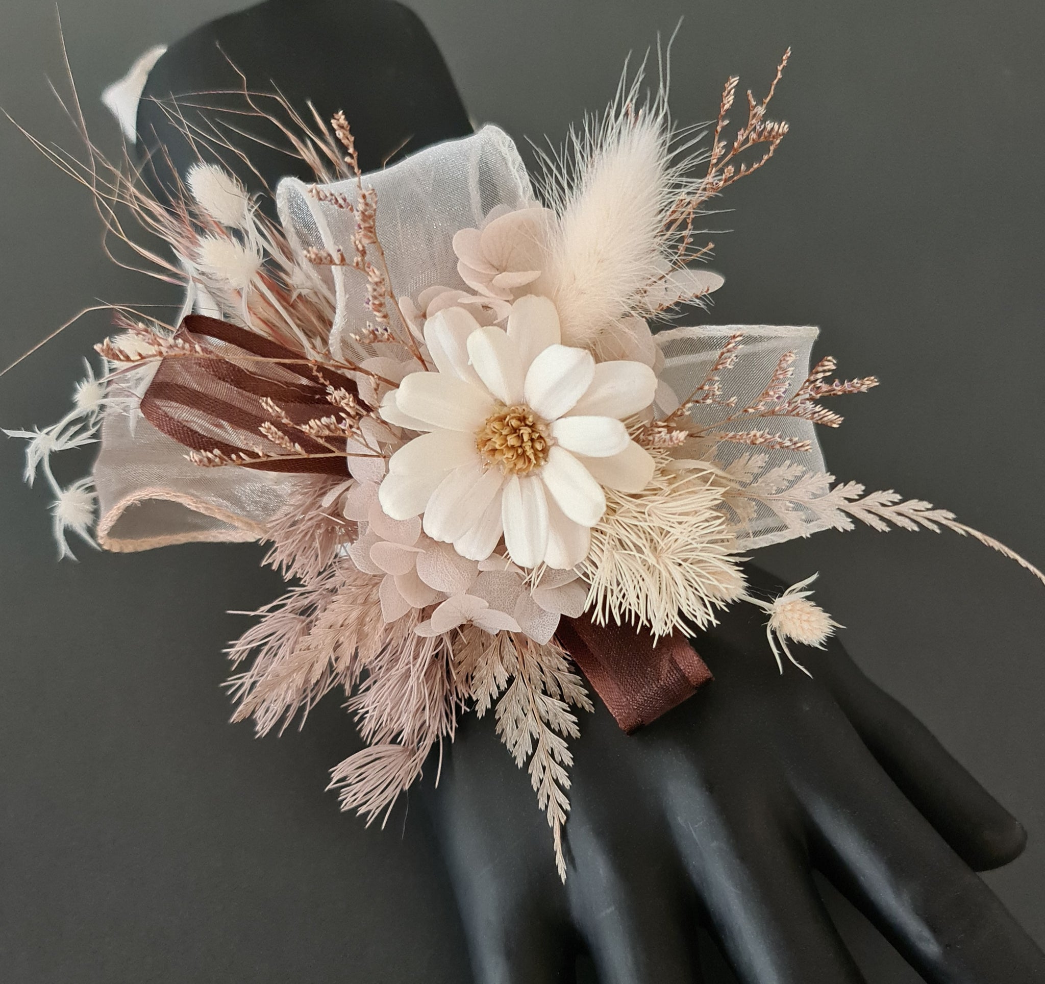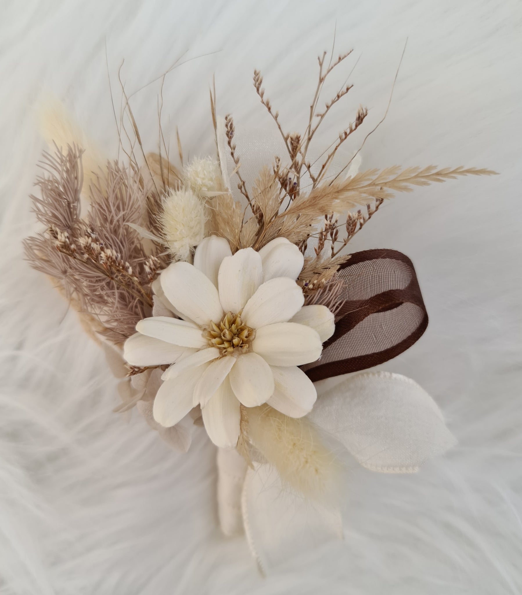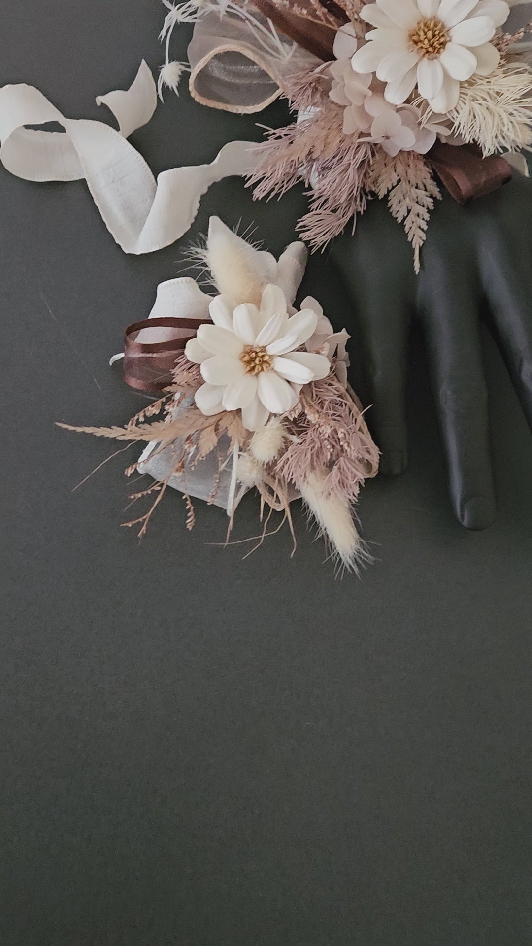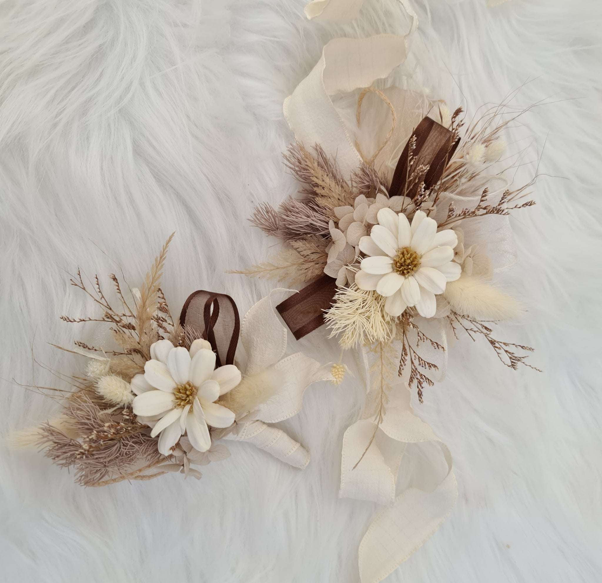 Boho Daisy preserved flowers corsage & boutonniere set - School formal, prom, graduation, wedding