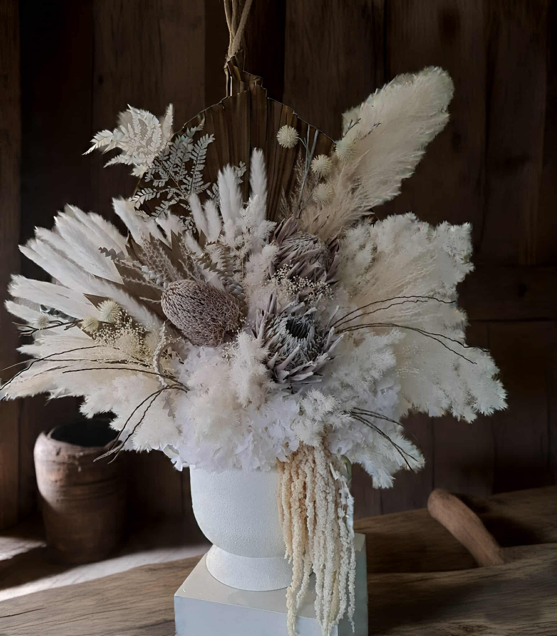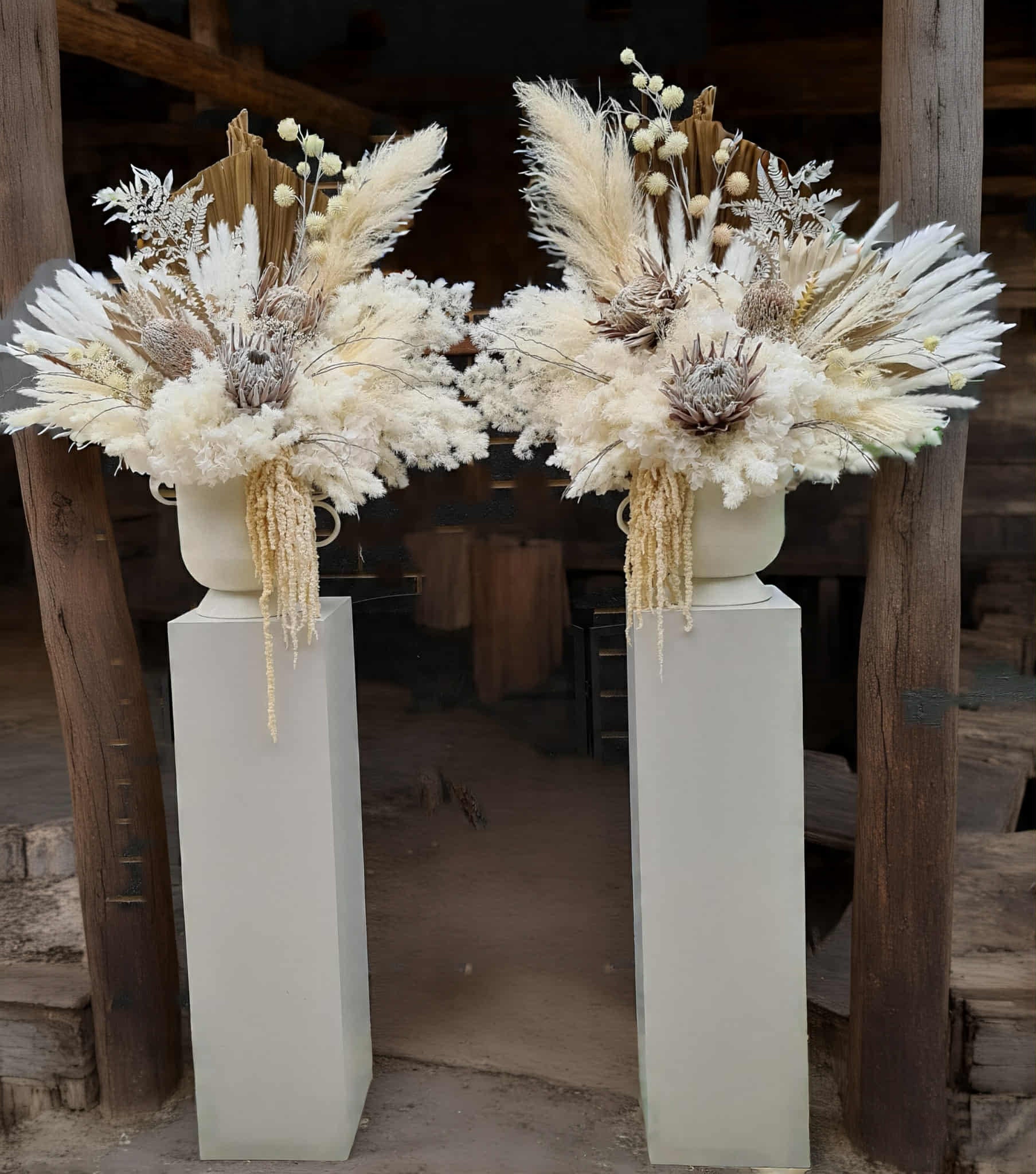 Great addition to your boho set up, can be placed on plinths, used as large table flowers or floor flowers (range of plinths available to hire at extra cost)