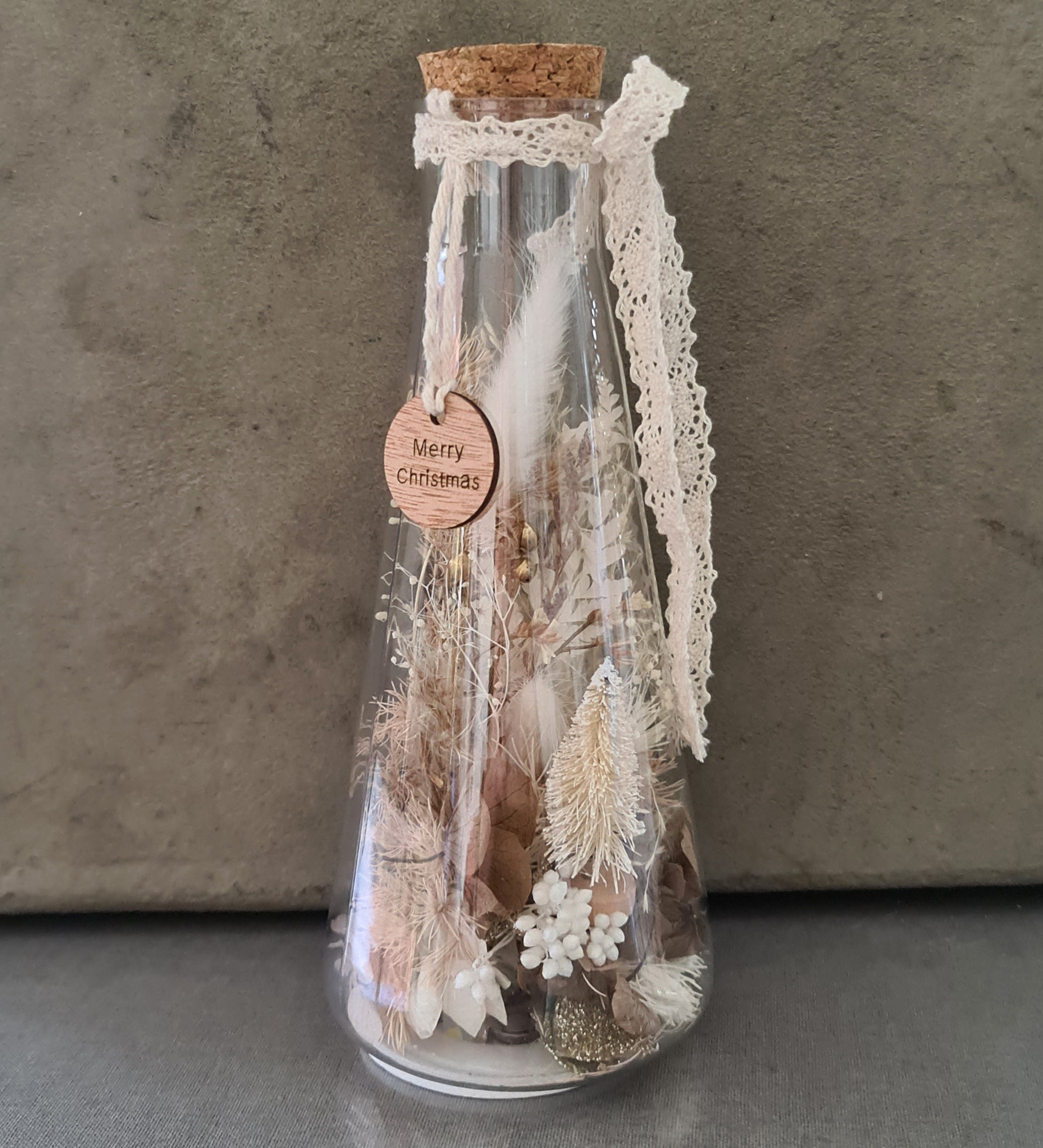 Boho everlasting flowers in conical bottle with lights – Xmas gift