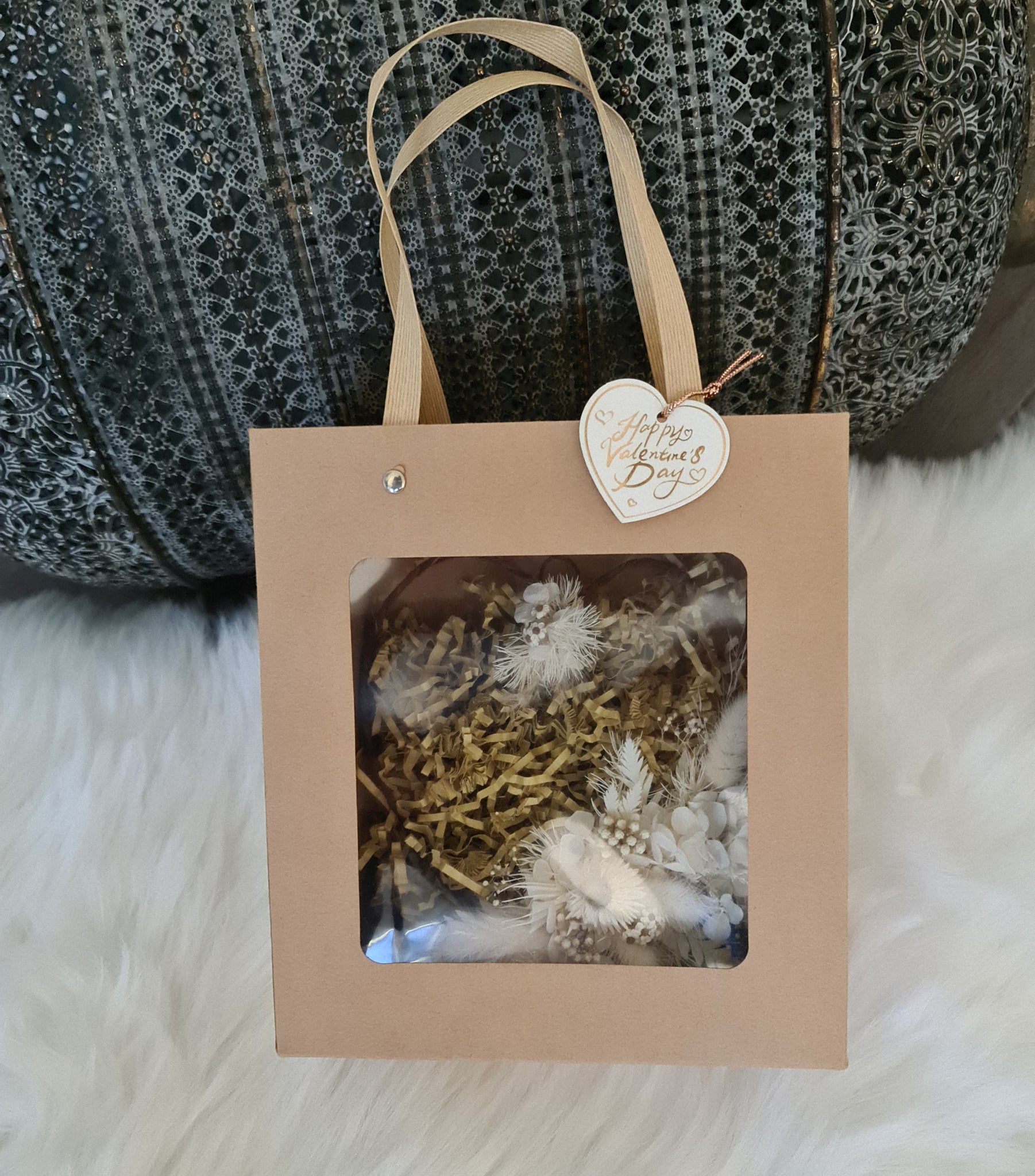 Boho Everlasting flowers love hearth (wall décor) in gift bag / box with “Happy Valentines” tag
