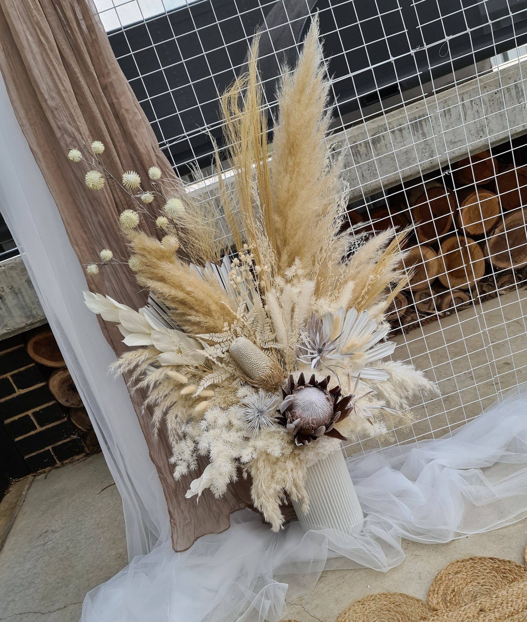 - Boho King Protea Everlasting arbour / backdrop flowers Style 1 – (CODE: ABH33) - $55