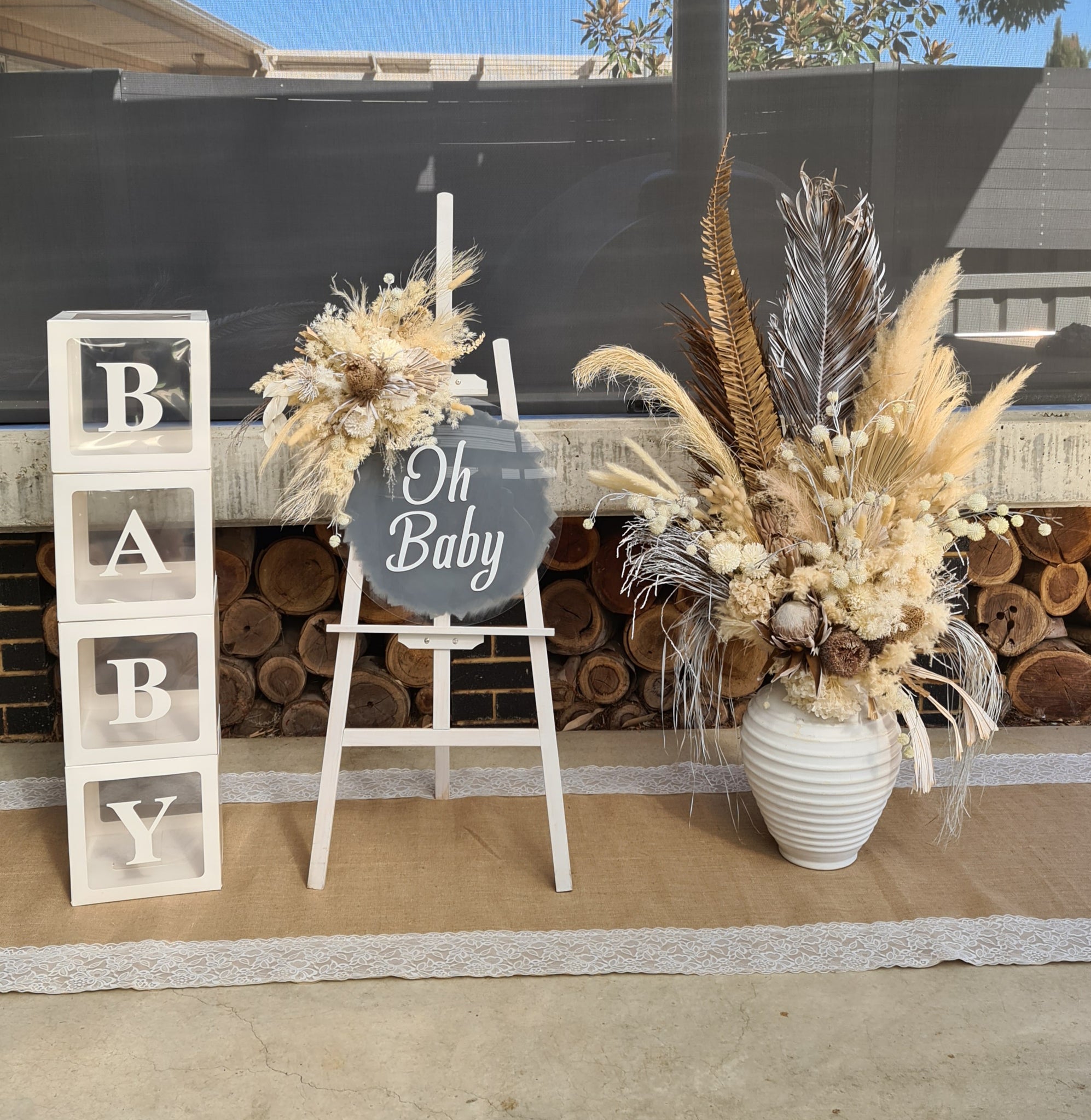 Boho neutral Baby Shower welcome sign & medium urn