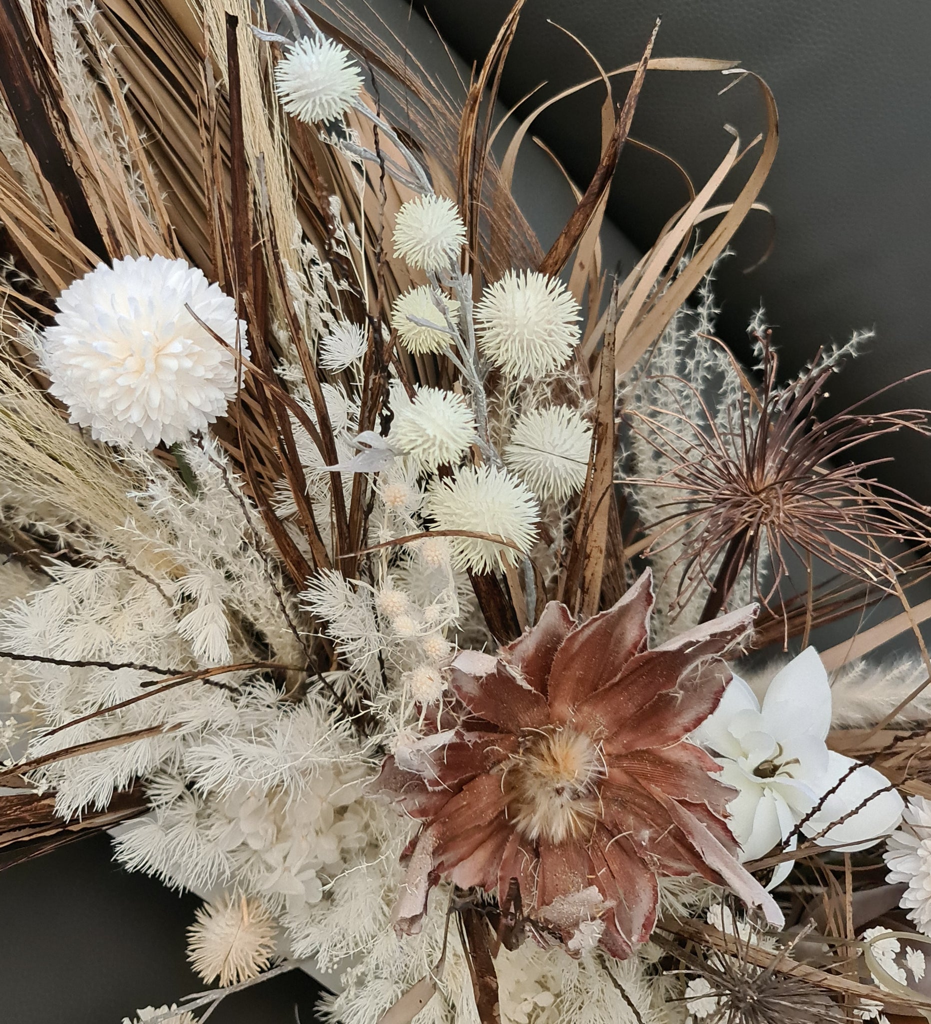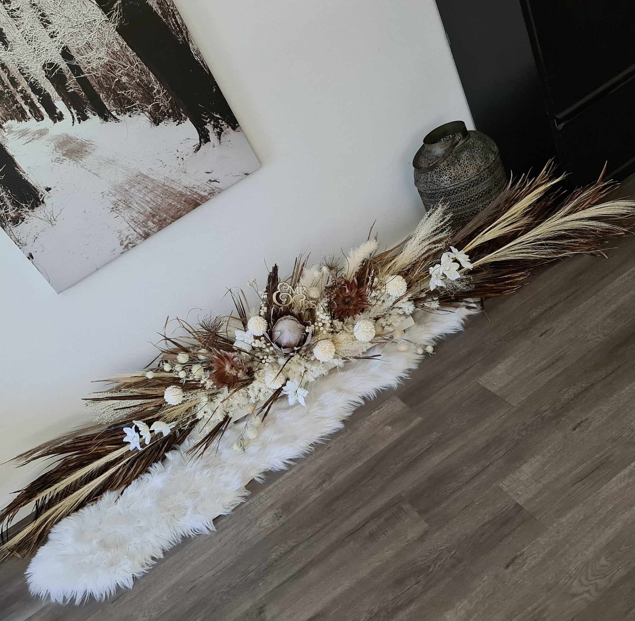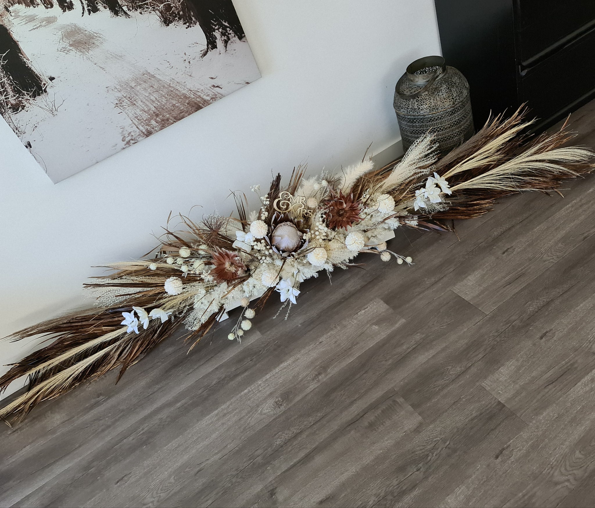 Boho table flowers combination of dry, preserved and silk flowers