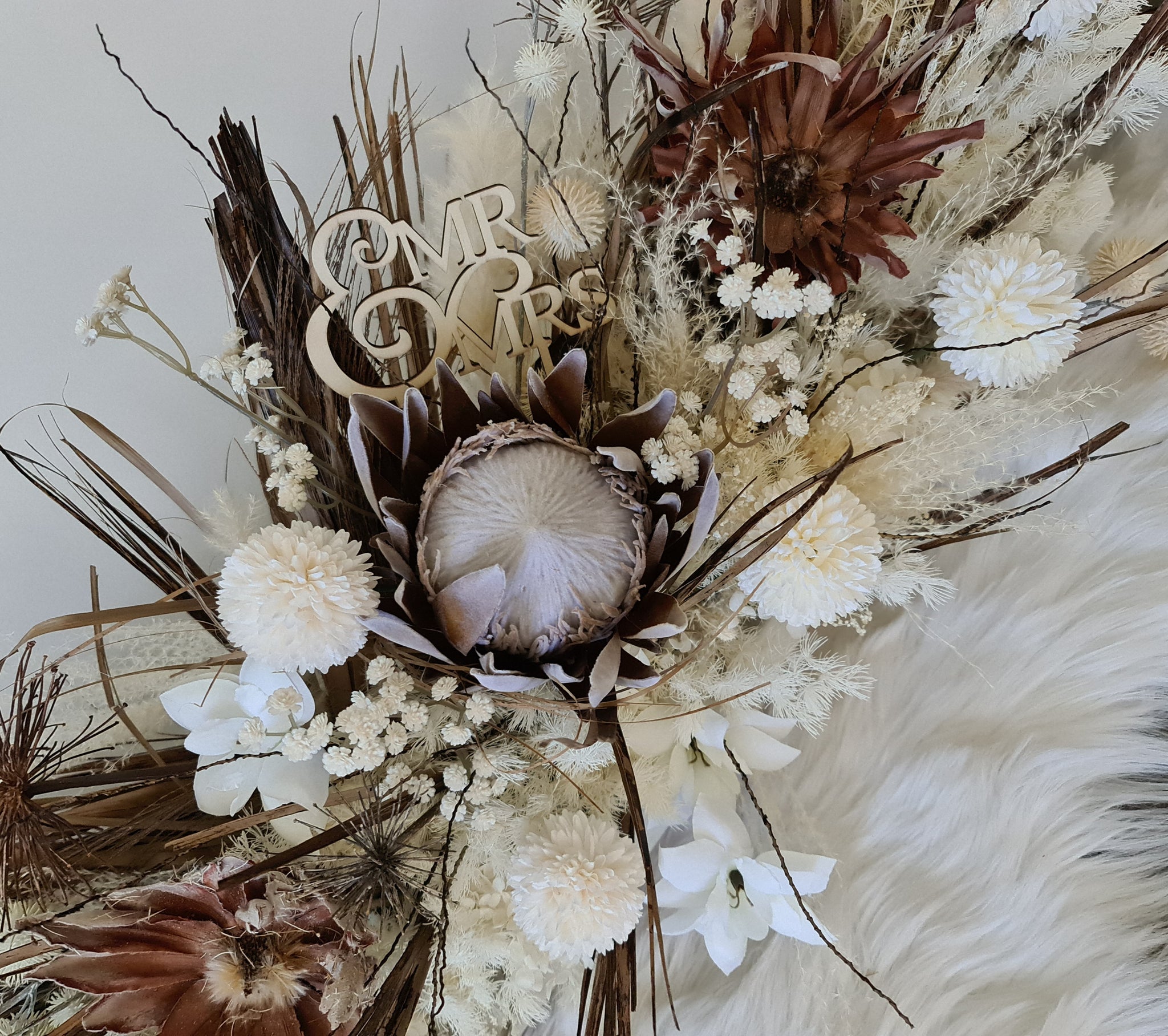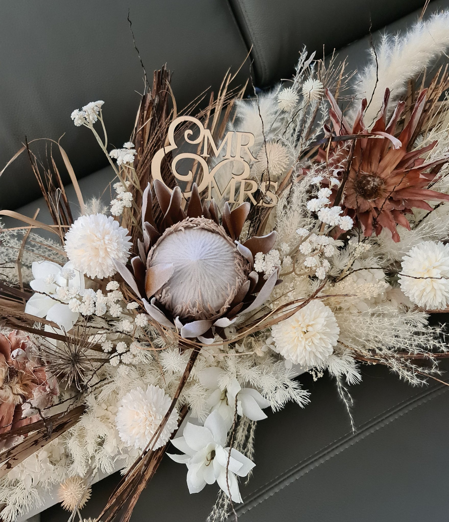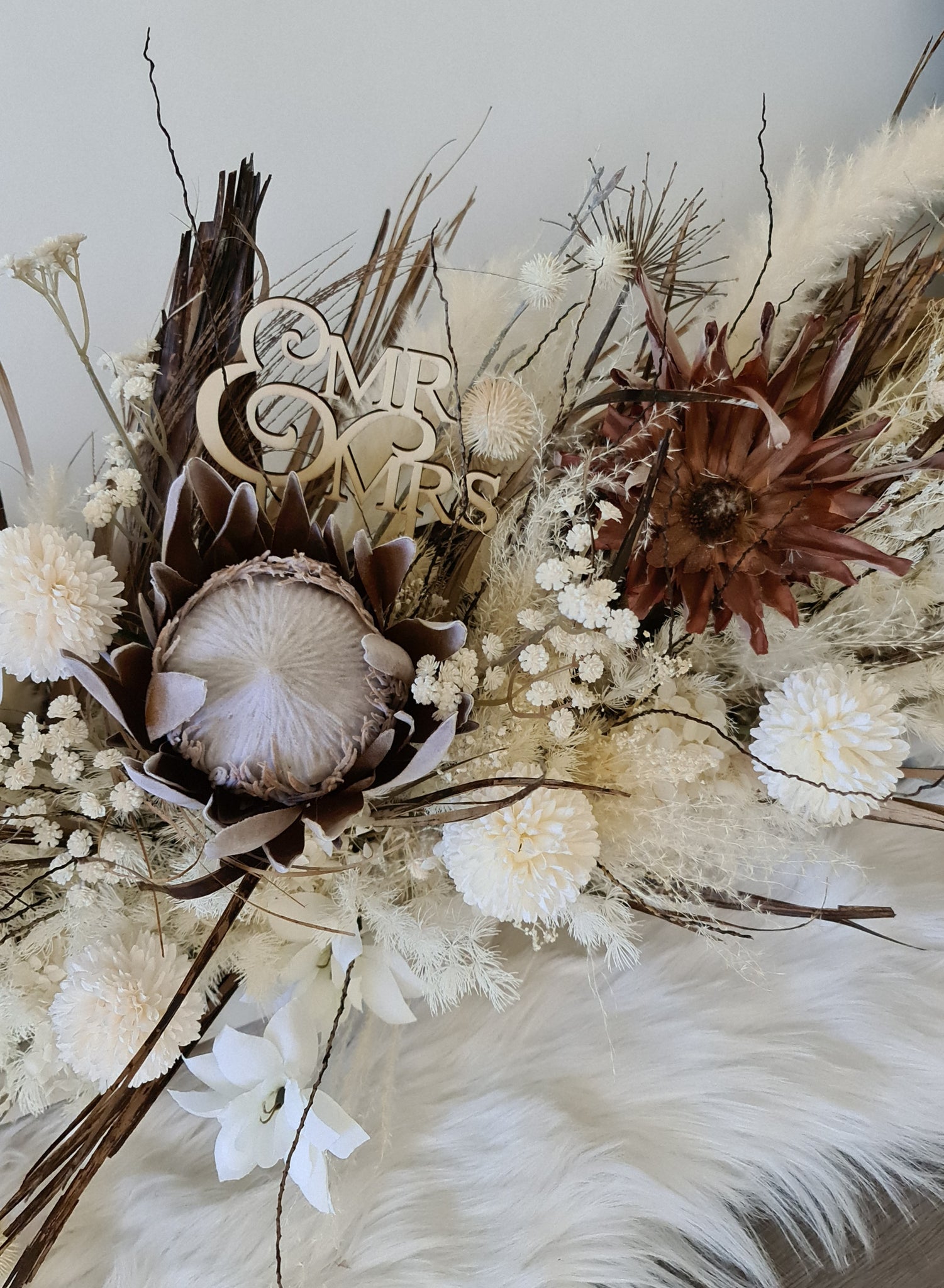 Boho table flowers combination of dry, preserved and silk flowers