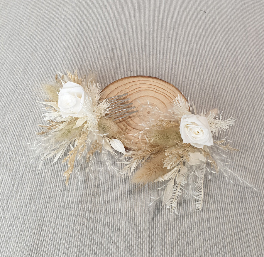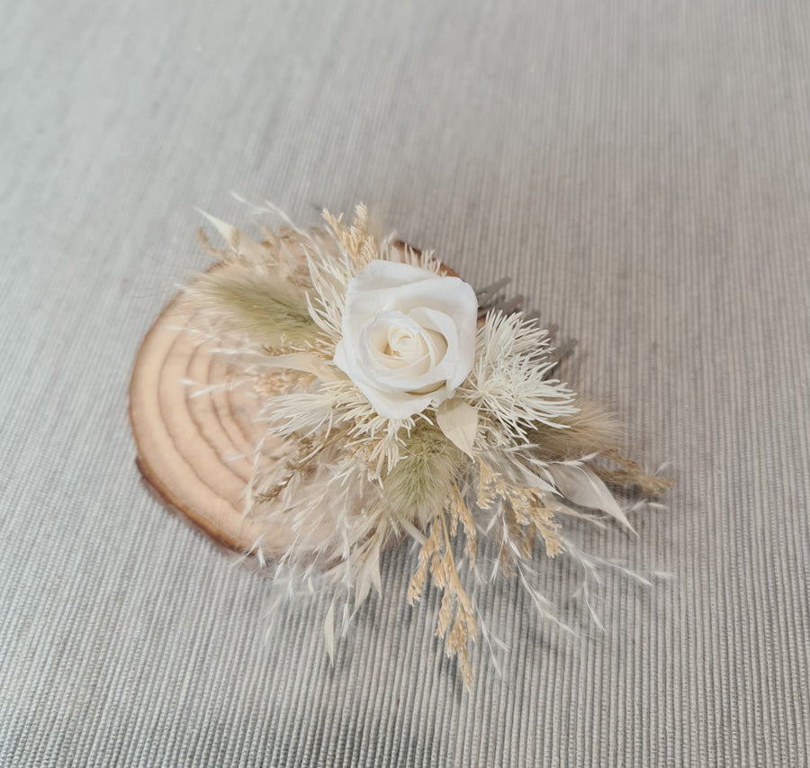 Bridal comb & grooms buttonhole with mini preserved rose